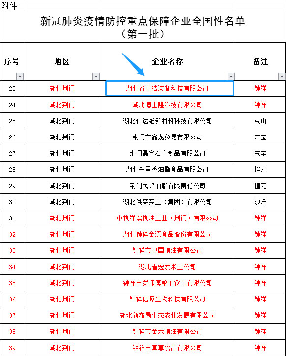 湖北顯浩被省經(jīng)信廳列為全國新冠肺炎疫情防控重點(diǎn)保障企業(yè)