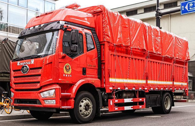 物資運(yùn)輸車(chē)有各種各樣的車(chē)型品牌,有東風(fēng)天錦、重汽、陜汽等。6米8, 高頂雙臥,18噸總質(zhì)量,花籃車(chē)廂,解放這代中卡風(fēng)格獨(dú)到,立體感很足。高頂雙臥駕駛室,適合多位駕駛員輪班。如果遇到跨地區(qū)長(zhǎng)距離增援,這輛車(chē)可以兩個(gè)駕駛員輪班,屬于先天性的優(yōu)勢(shì)了。260馬力的大柴CA6DK1-26E6國(guó)六發(fā)動(dòng)機(jī),排量7.2升,260馬力,1000N.m的扭矩,各方面表現(xiàn)都非常優(yōu)秀。物資運(yùn)輸車(chē)匹配的應(yīng)該是解放的8擋手動(dòng)變速箱。前橋采用了解放最新的F4N-1900中卡橋,載重量5.5噸級(jí)別,后橋則是解放的378橋,速比有多種可選,前后橋均采用了十孔螺栓結(jié)構(gòu),并且搭配了275/80R22.5的輪胎,整車(chē)也采用了板簧懸架。左側(cè)車(chē)架甚至連經(jīng)典的器材箱都完好保留,除此之外,鋁合金氣瓶、解放的氣驅(qū)尿素和空濾看得一清二楚。油箱位于車(chē)架右側(cè),鋁合金油箱容積400升。物資運(yùn)輸車(chē)整車(chē)基本沒(méi)有針對(duì)消防做特殊化改裝,除欄板高度較高。物資運(yùn)輸車(chē)食品、器材等基本上絕大部分物資的運(yùn)輸,既可以尾開(kāi)門(mén)卸貨,也可以側(cè)開(kāi)門(mén)卸貨。