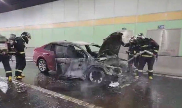 隧道內(nèi)轎車(chē)自燃,情況危急!先導(dǎo)處置車(chē)攜手消防員逆行救援。天氣炎熱,風(fēng)高物燥??諝鉂穸群艿停苋菀装l(fā)生火災(zāi)。這時(shí)突發(fā)緊急情況,隧道的一輛小轎車(chē)發(fā)生了火情,自燃了。時(shí)間緊迫先導(dǎo)處置車(chē)第一時(shí)間趕到現(xiàn)場(chǎng)進(jìn)行處置。因?yàn)樗淼辣容^狹窄,又是下班的完高峰期。自燃導(dǎo)致了高速車(chē)輛大排長(zhǎng)龍。消防車(chē)比較大開(kāi)到隧道口就沒(méi)辦法往前開(kāi)了。為了讓消防車(chē)盡快到達(dá)現(xiàn)場(chǎng)滅火。先導(dǎo)處置車(chē)的人員在指揮交通秩序。搭載消防隊(duì)員進(jìn)隧道滅火。很快現(xiàn)場(chǎng)明火被撲滅,自燃車(chē)輛被拖離。經(jīng)多先導(dǎo)處置車(chē)部門(mén)聯(lián)動(dòng)處置,快速消除車(chē)輛燃爆險(xiǎn)情,交通恢復(fù)正常。
