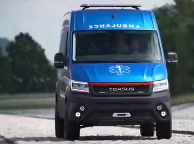 TORSUS TERRASTORM,捷克共和國制造的快速高機(jī)動性的車輛,它設(shè)計(jì)是用于道路的崎嶇山區(qū)使用??梢杂兴蛘吣酀舻牡匦蜗旅娲┰轿kU(xiǎn)區(qū)域??梢园踩竭_(dá)偏遠(yuǎn)地區(qū)把病人送到醫(yī)院救治。車輛長6米,總重量有3.5噸。搭載了176馬力的發(fā)動機(jī)。扭矩410牛米,配備自恢復(fù)絞盤。穿越80厘米深的區(qū)域,續(xù)航里程830公里。