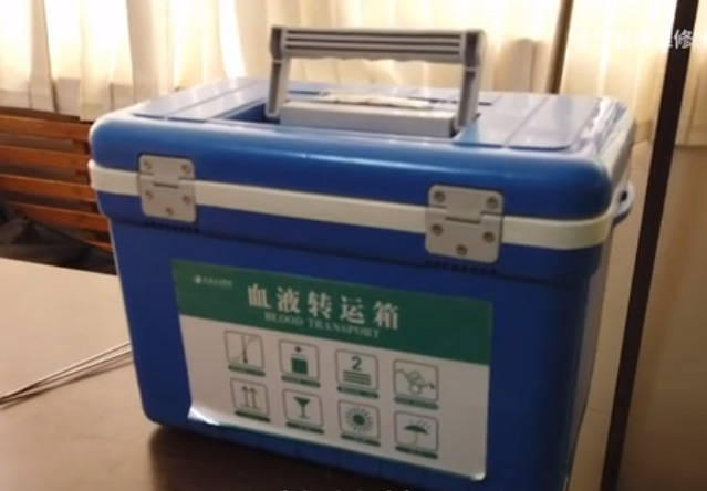 醫(yī)院輸血、送血,用血液中轉(zhuǎn)箱來周轉(zhuǎn),它是一個帶保溫功能的箱子。箱子里面內(nèi)膽可能有一些泡沫之類的保溫材料。箱子的前面有一塊液晶顯示屏,用來顯示箱子溫度數(shù)據(jù)。不顯示的話就是電池沒了需要更換電池。箱子的扣子打開后,正常的話是放冰袋之類的東西,它的目的是可以讓里面的血液保持在一個恒定的溫度。因為我們正常的血液的溫度需要存放在八攝氏度左右。拿走上面的格子槽,可以看到箱體里面的大空間來存放血液制品。根據(jù)血液、血漿、血小板不同材料要求來進行溫度調(diào)節(jié)。溫度不會受外界影響變化。