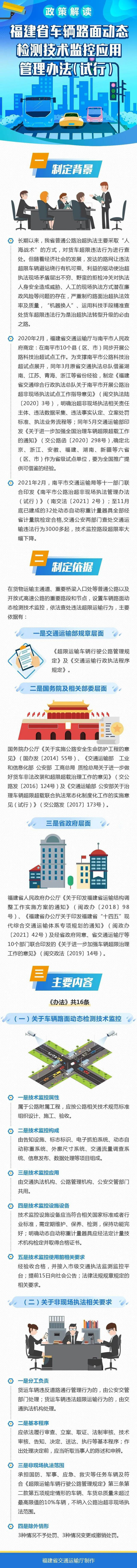 為加強道路貨物運輸車輛超限超載治理,規(guī)范道路運輸非現(xiàn)場執(zhí)法工作監(jiān)測車動態(tài)檢測,車輛路面動態(tài)檢測技術監(jiān)控由告知設施、標志標識、電子抓拍系統(tǒng)、動態(tài)自動稱重系統(tǒng)、外廓尺寸系統(tǒng)、交通流量調查系統(tǒng)、信息發(fā)布、數(shù)據處理等項目組成。車輛路面動態(tài)檢測技術監(jiān)控的電子抓拍系統(tǒng)由公安交管部門接入應用,用于查處貨運車輛通過檢測區(qū)域不按規(guī)定車道行駛等涉嫌違反道路交通安全規(guī)定的行為;動態(tài)自動稱重及外廓尺寸系統(tǒng)由交通執(zhí)法機構接入應用,用于非現(xiàn)場查處貨運車輛通過檢測區(qū)域違反超限運輸管理等違法行為;交通流量調查系統(tǒng)由公路管理機構接入應用。如何查處《辦法》要求,車輛路面動態(tài)檢測技術監(jiān)控使用前應提前15日向社會公告,運用車輛路面動態(tài)檢測技術監(jiān)控非現(xiàn)場查處貨運車輛超限運輸違法行為應依法履行審查、立案、取證、法制審核、技術審核、告知、決定、送達、執(zhí)行等基本程序。