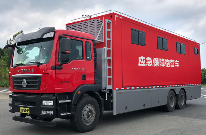 后勤保障車淋浴車系列選擇重汽汕德卡底盤,搭載強悍發(fā)動機,動力強、機動性好、通過能力高,出勤響應快等種種優(yōu)點。它的駕駛室上面車廂兩側(cè)、尾部都可以安裝爆閃燈。由駕駛室的警報器材擴音系統(tǒng)來控制。配置了超大容量的水箱,保障淋浴用水的要求。污水可以集中收納。車載的發(fā)電機主可以自主發(fā)電。也可以外接電源輸入。淋浴能力可以幾人同時使用。水溫可以調(diào)節(jié)30幾到60度之間,配備了不銹鋼花灑。頂部還有排氣扇??梢员U狭茉∈业目諝饬魍ā_€有獨立衛(wèi)生間,大鏡子洗手臺,更衣柜、更衣凳、暖風機冷暖空調(diào)等。設(shè)計合理配置高。后勤保障車提供了生活保障條件。讓執(zhí)行任務(wù)的人員有很好的洗澡條件。