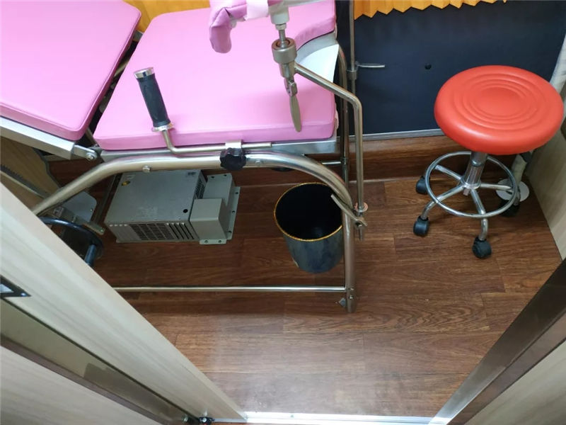 婦檢室配置齊全的垃圾桶,醫(yī)生坐椅,照明燈,置物架,方便醫(yī)生檢查所用。