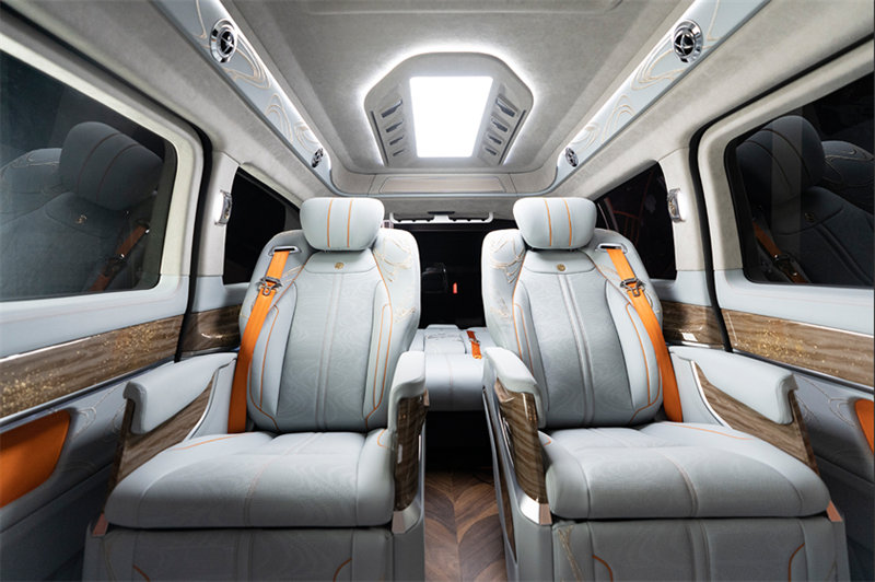 前排保留原車質(zhì)感同時,加入全新設計語言,簡約現(xiàn)代與中式美學相結(jié)合,雙色搭配,更顯高級感,主副駕駛座椅采用納帕包覆,直接提升整車質(zhì)感,還可提升舒適度,讓主副駕駛位,都能有一個尊貴體驗改裝商務車的質(zhì)感、觸感雙升級,十分明顯商務接待、長途旅行都能享受視覺與觸覺的“心靈棲息”