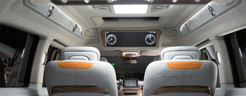 改裝商務車集成式總控顯示屏,燈光、音響、投影,一觸即控,隨時辦公  休閑,配備懸浮式多媒體屏幕雅馬哈音響系統(tǒng)3M輕量型隔音