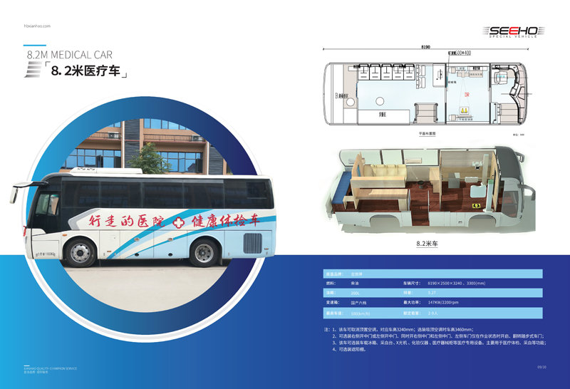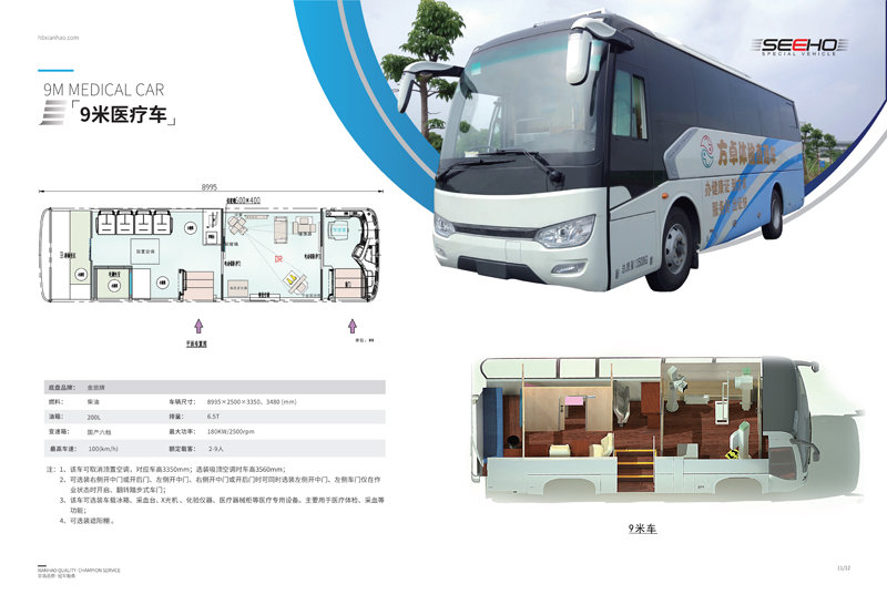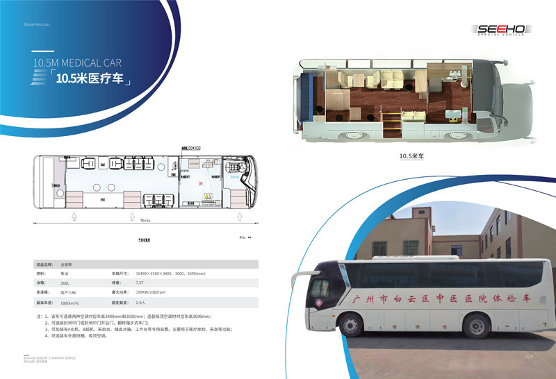 顯浩專(zhuān)用車(chē)生產(chǎn)的體檢車(chē)均選用一線品牌車(chē)(宇通、金龍、金旅)實(shí)用、先進(jìn)、布局合理、操作方便、駕乘舒適。 體檢車(chē)長(zhǎng)有6米、7米、8.2米、9米、10.5米、11米、12米可選。
